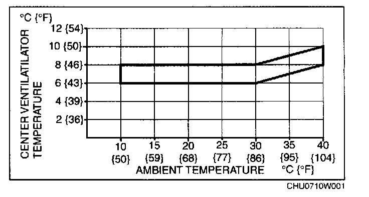 2. Place a dry-bulb thermometer in the driver-side center ventilator outlet.