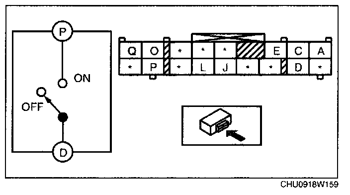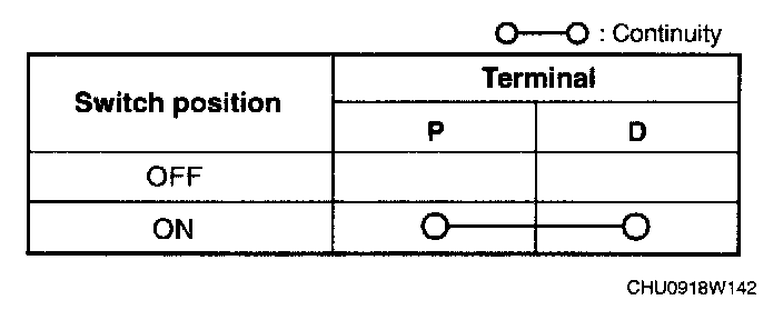 4. Verify that the continuity between the light switch terminals is as indicated in the table.