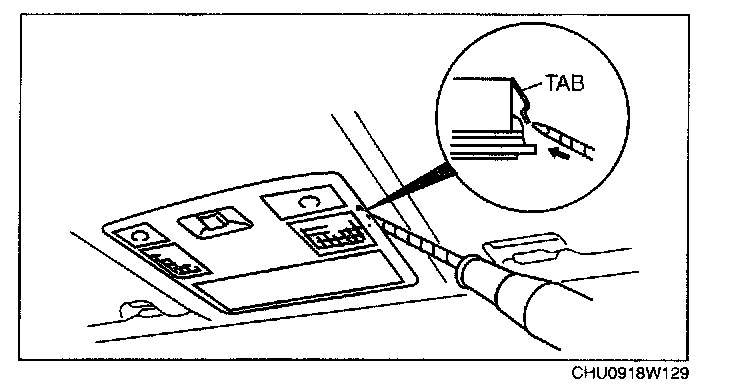 1. Insert a tape-wrapped flathead screwdriver into the gap between the headliner and the map light.