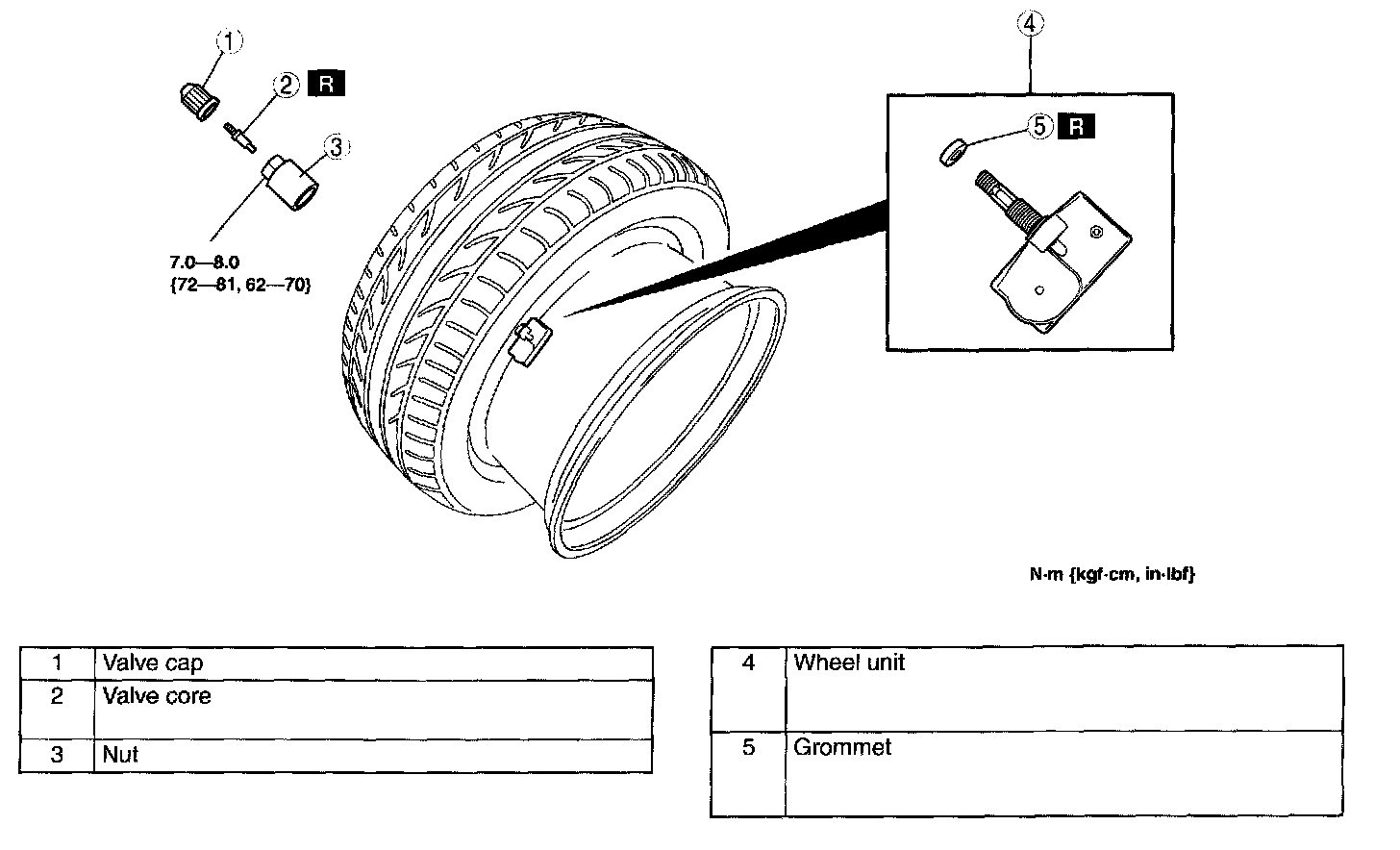 4. Fill the tire with air and verify the valve nut tightening torque.