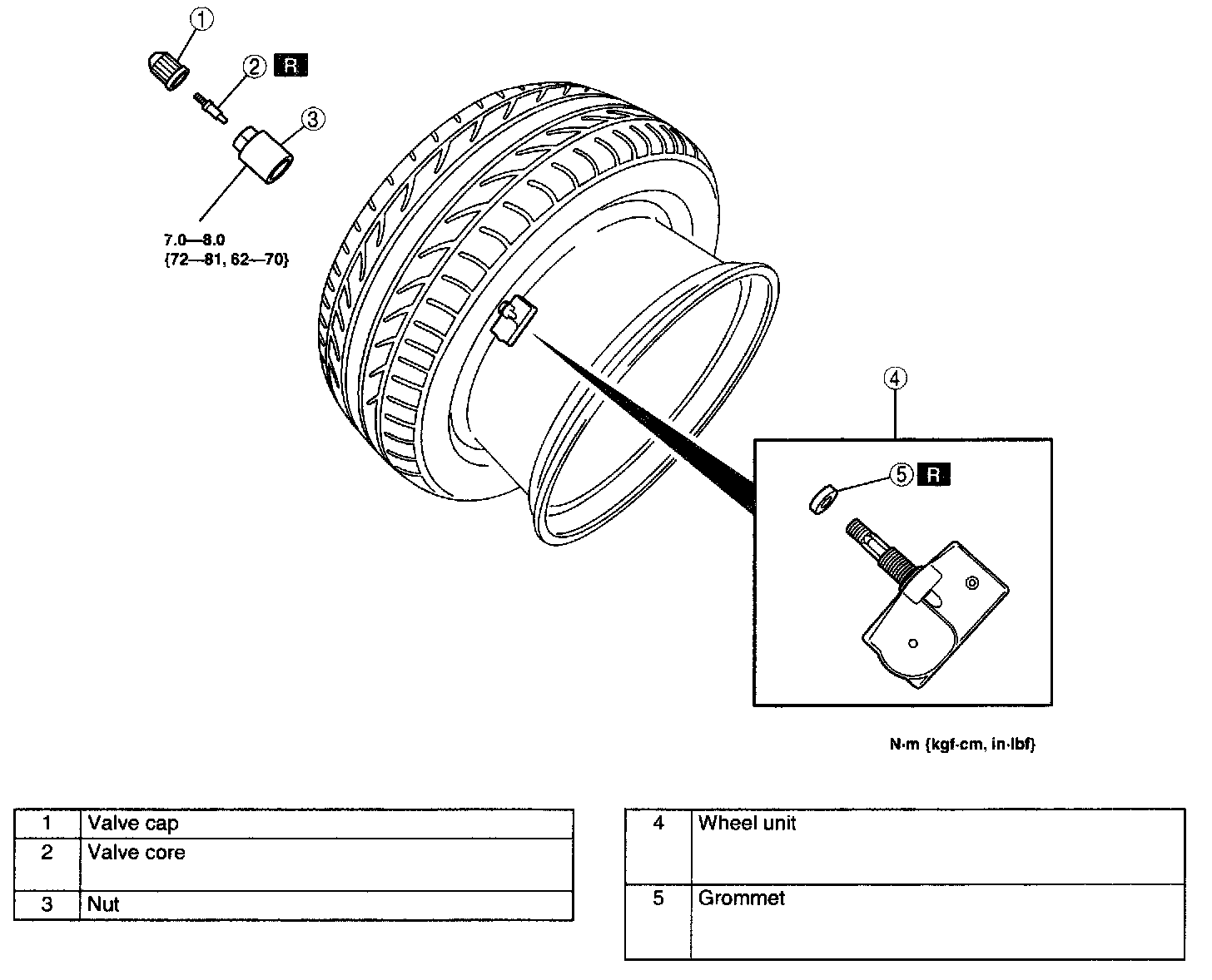 ^ Record the new wheel identification code for tire pressure monitoring system (TPMS) configuration.