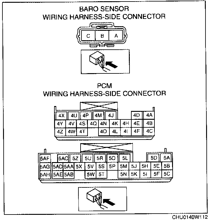 BAROMETRIC PRESSURE (BARO) SENSOR INSPECTIONNOTE: Before performing the following inspection, make sure to follow the troubleshooting flowchart. (See FOREWORD.) Flow of Diagnosis