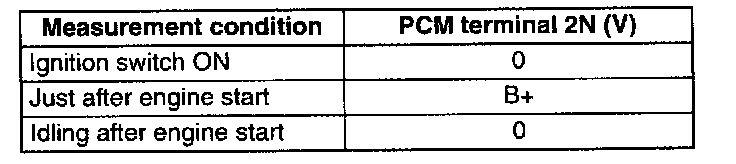 3. Verify that the voltage at PCM terminal 2N is as indicated in the table.