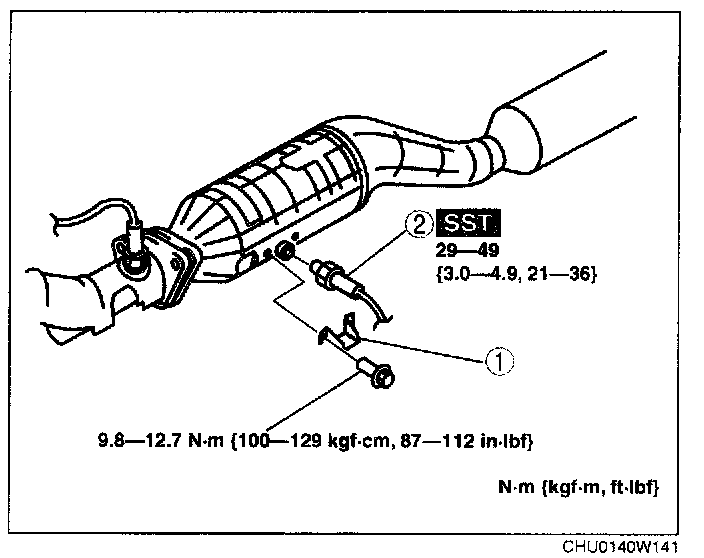 1. Remove the rear HO2S using the SST (49 T018 001).