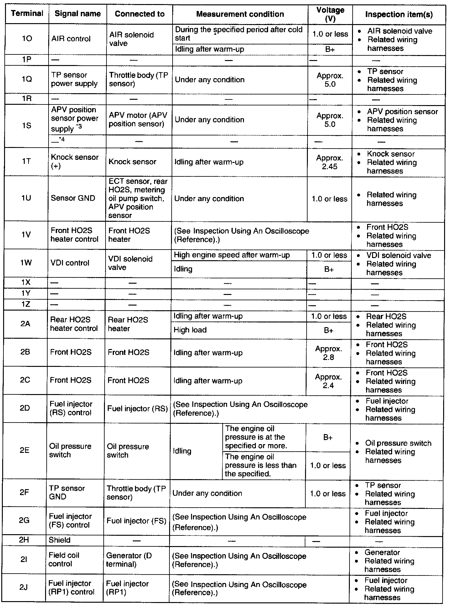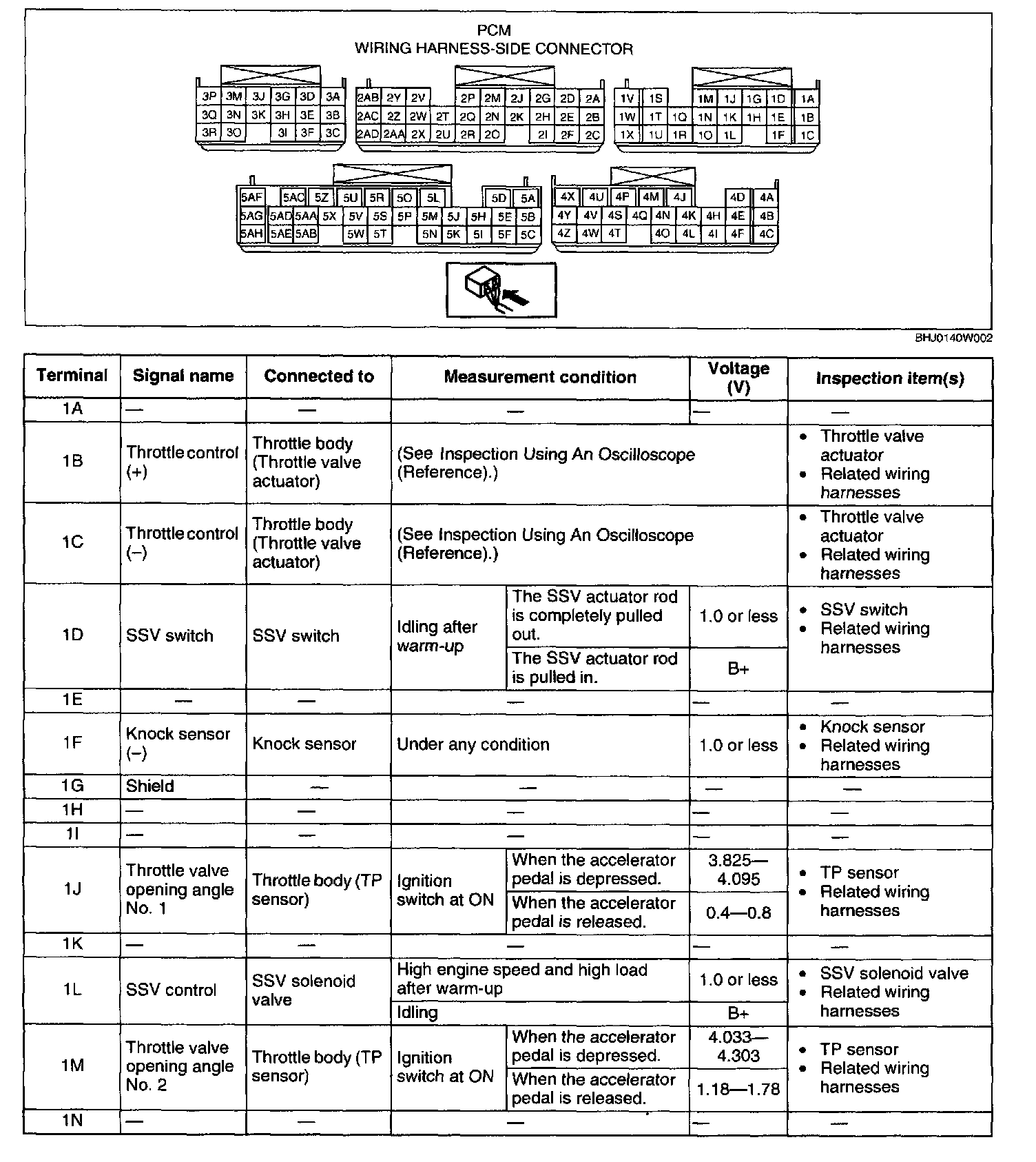 PCM Terminal Voltage Table (Reference) - Terminals (1O - 2J):