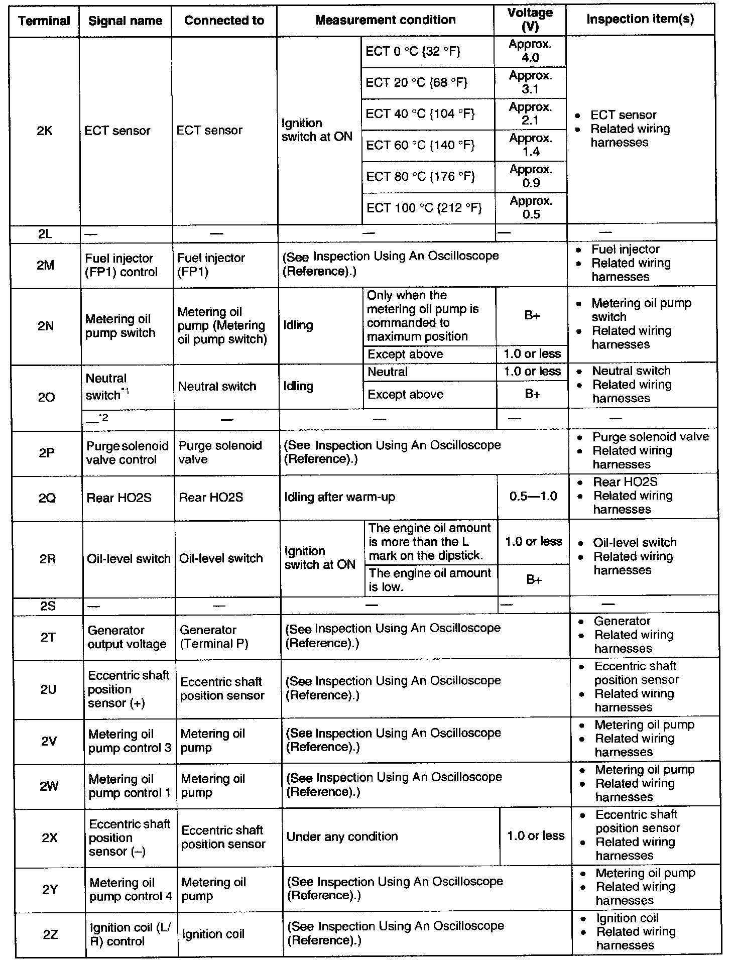 PCM Terminal Voltage Table (Reference) - Terminals (2K - 2Z):