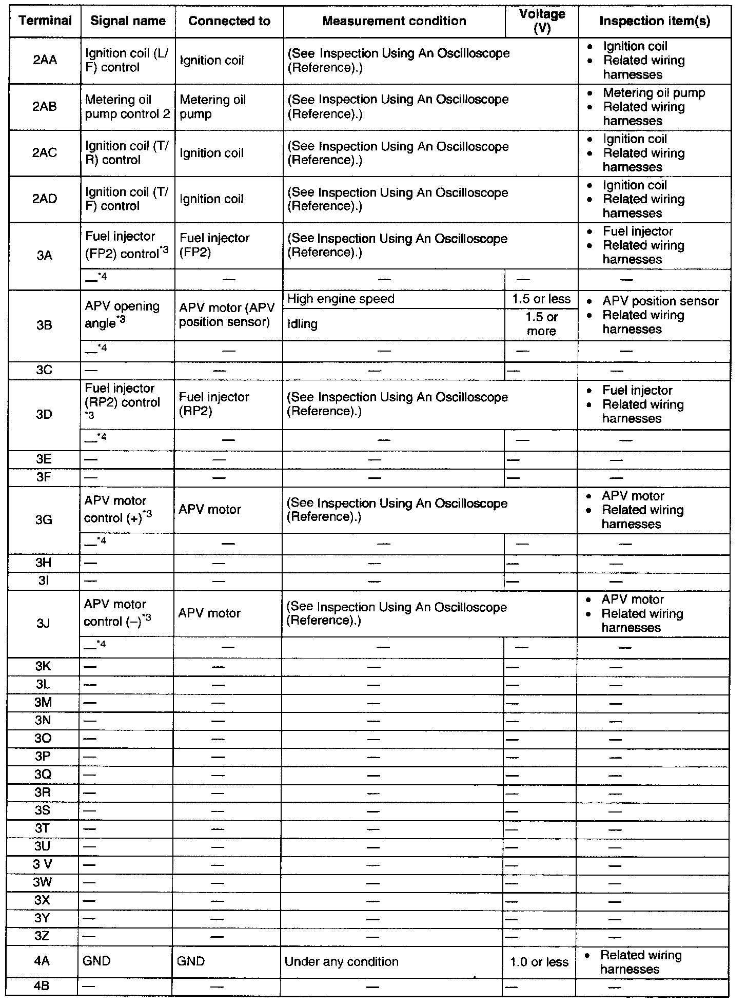 PCM Terminal Voltage Table (Reference) - Terminals (2AA - 4B):
