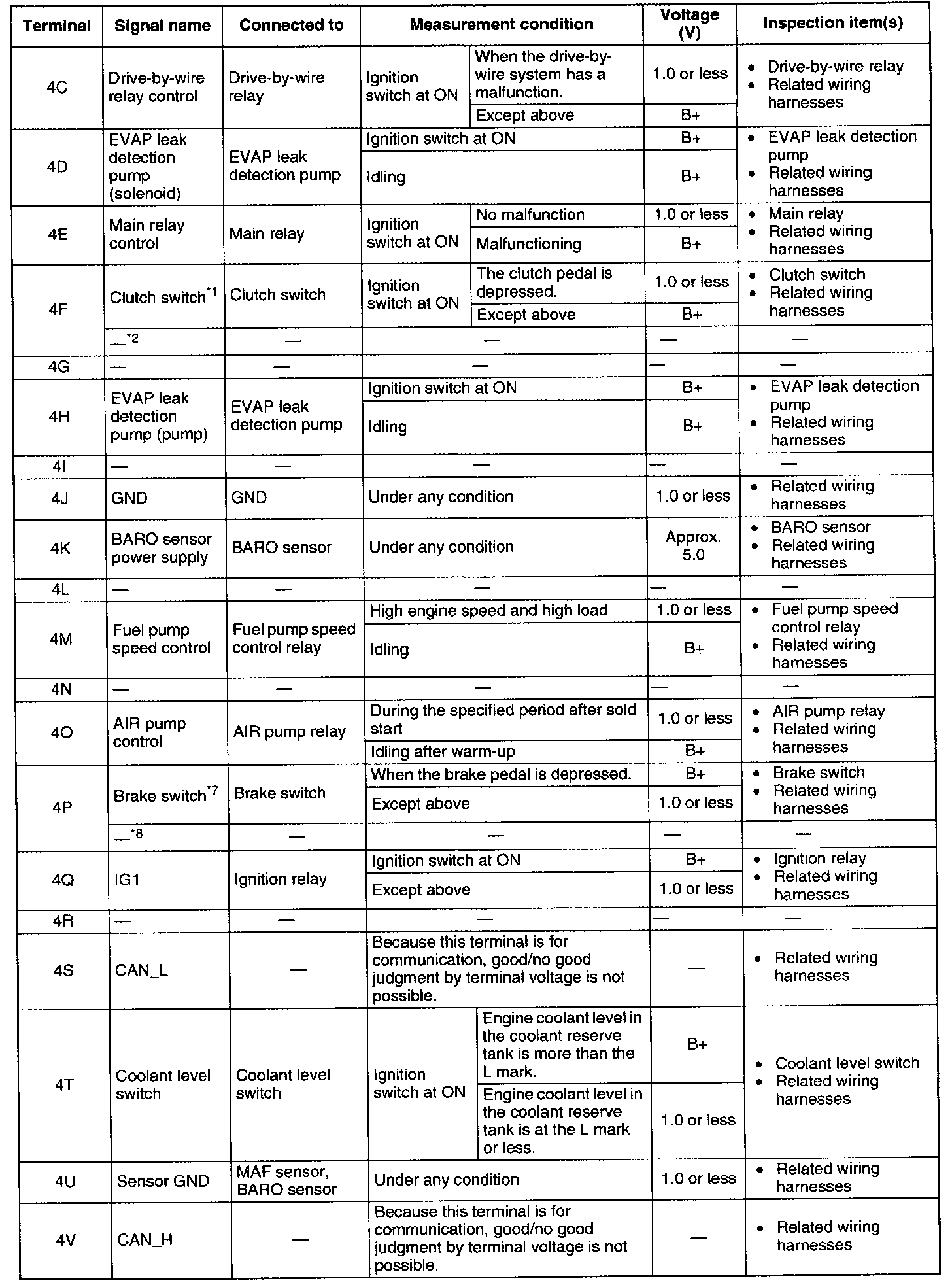 PCM Terminal Voltage Table (Reference) - Terminals (4C - 4V):