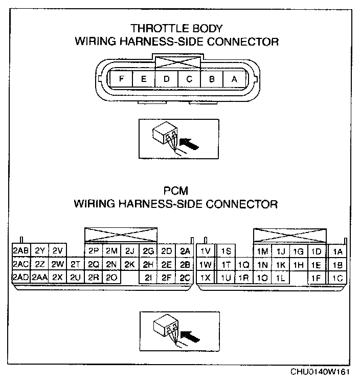 - Throttle body terminal F and PCM terminal 1J