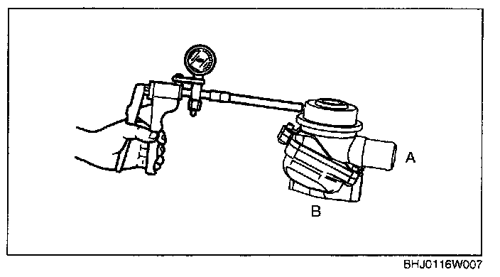 4. Pressurize the actuator valve of the AIR control with a negative pressure of approx. 60 kPa {0.61 kgf/sq.cm, 8.7 psi}.