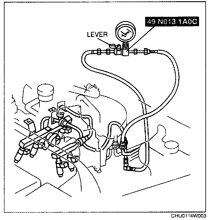 FUEL LINE PRESSURE INSPECTIONWARNING: Fuel line spills and leakage from the pressurized fuel system are dangerous. Fuel can ignite and cause serious injury or death and damage. To prevent this, complete the following inspection with the engine stopped.