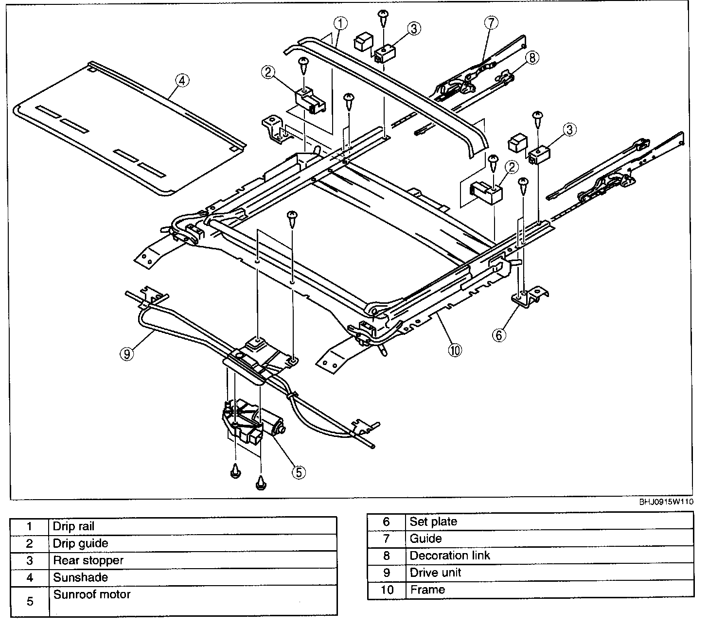 SUNROOF UNIT DISASSEMBLY/ASSEMBLY1. Remove the glass panel.
