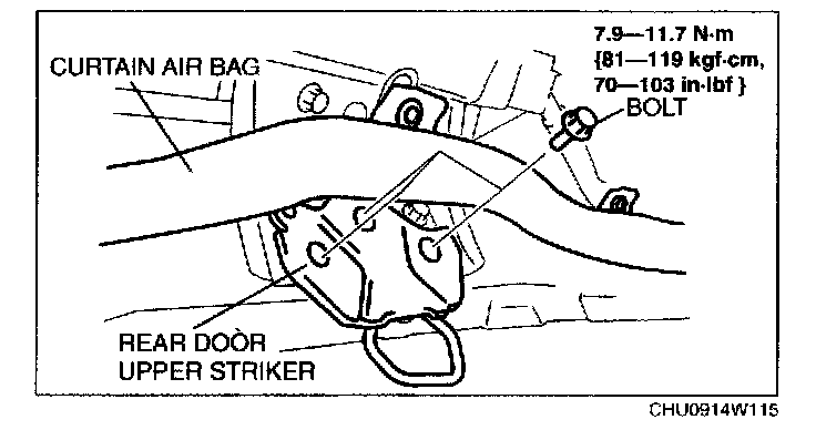 6. Remove the rear door striker (upper).