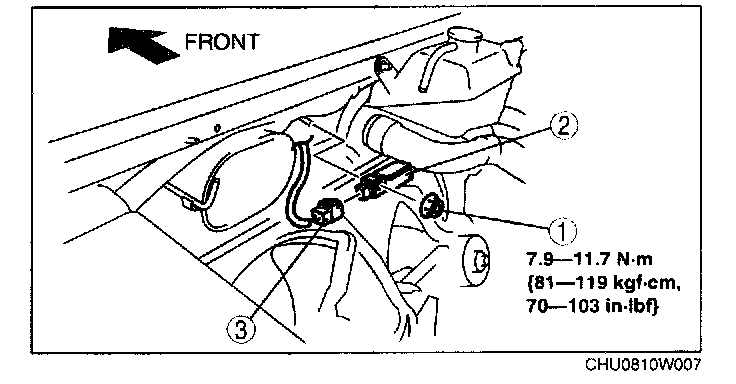 CRASH ZONE SENSOR REMOVAL/INSTALLATIONWARNING: Handling the crash zone sensor improperly can accidentally deploy the air bags and pre-tensioner seat belts, which may seriously injure you. Read the service warnings and cautions before handling the crash zone sensor.