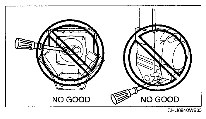- inserting a screwdriver or similar object into the connector of an air bag module or a pre-tensioner seat belt may damage the connector and cause the air bag module or the pre-tensioner seat belt to operate (deploy) improperly, which may cause serious injury. Never insert any foreign objects into the air bag module or seat belt connectors.