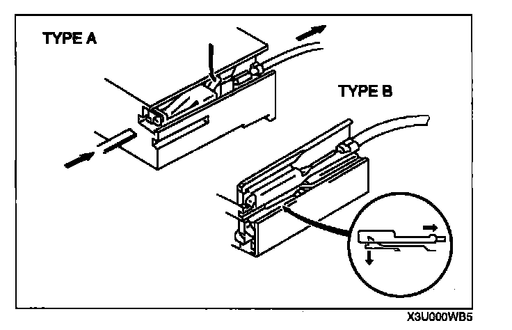 - Use the appropriate tools to remove a terminal as shown. When installing a terminal, be sure to insert it until it locks securely.