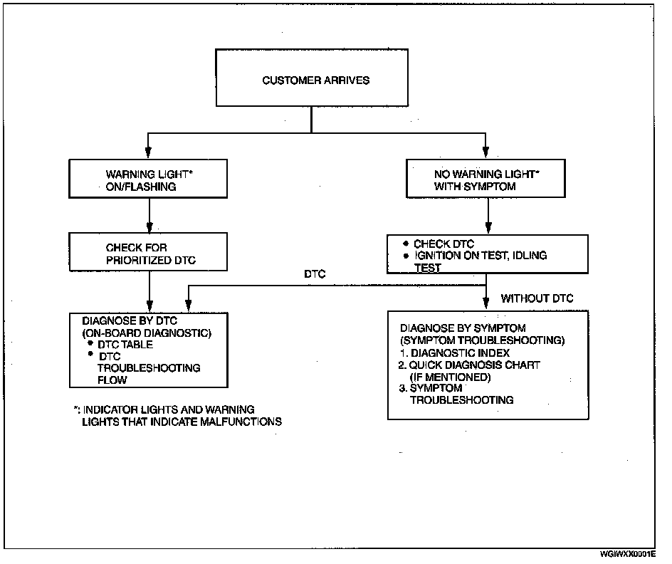 - The quick diagnosis chart lists diagnosis and inspection procedures to be performed specifically relating to the cause of the malfunction.