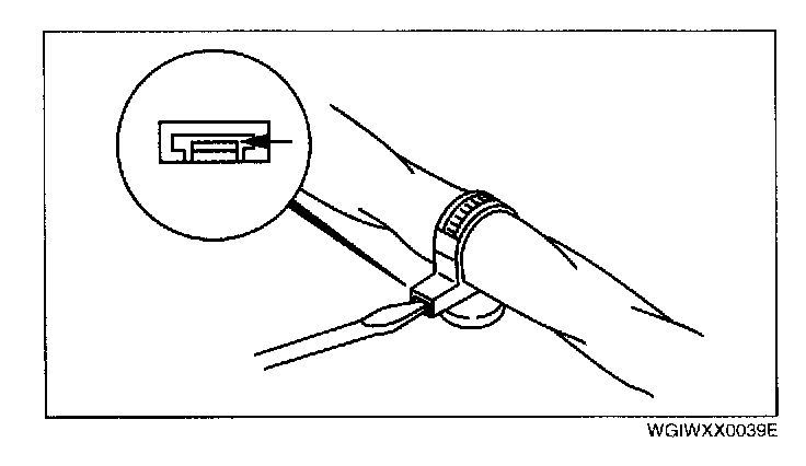Wiring harness- To remove the wiring harness from the clip in the engine room, pry up the hook of the clip using a flathead screwdriver.