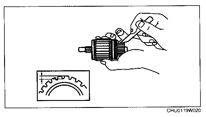 - If not as specified, adjust with an adjustment washer (between drive housing front cover and magnetic switch).