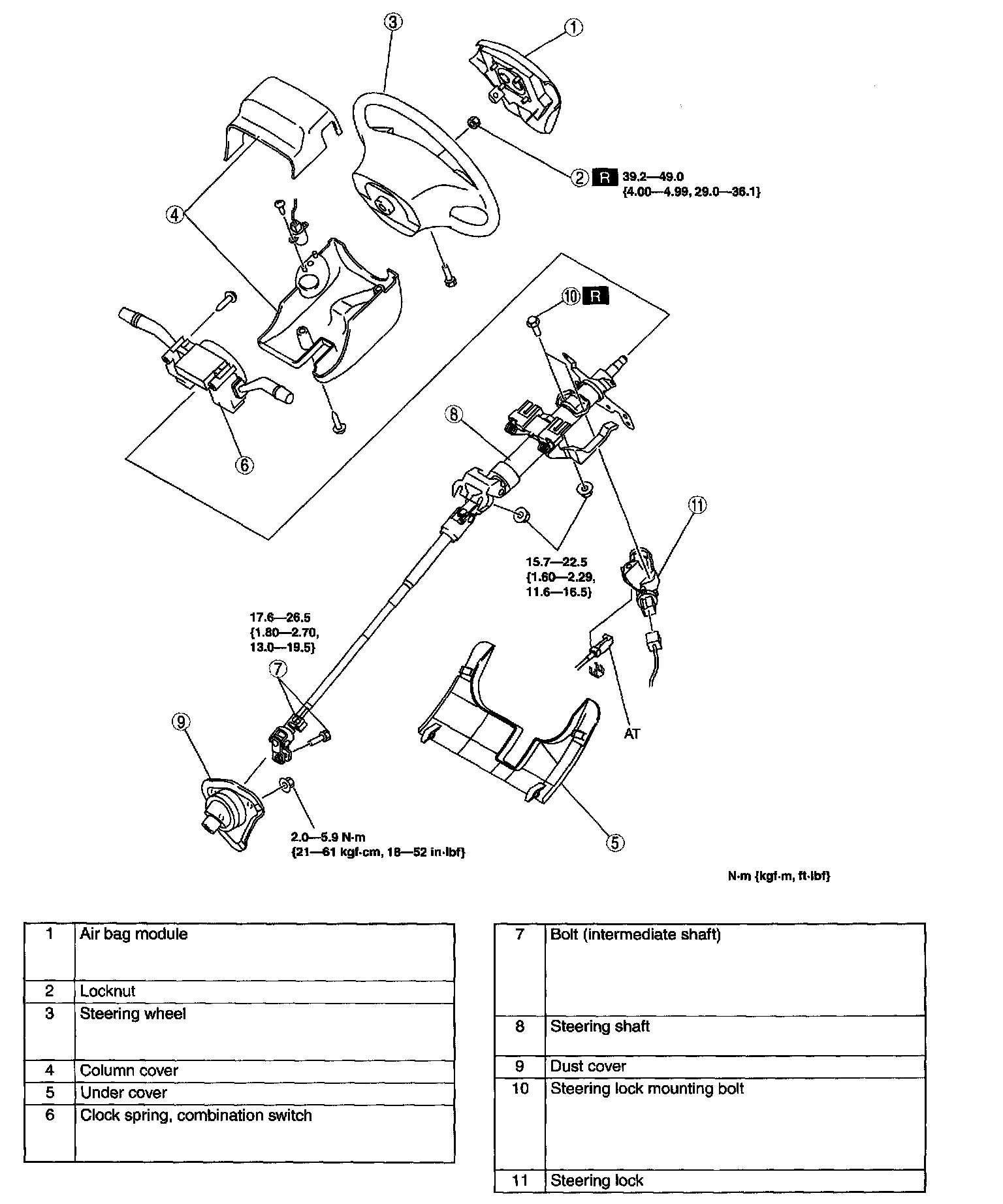 Tightening torque 15.7 - 22.5 Nm (1.60 - 2.29 kgf-m, 11.6 - 16.5 ft. lbs.)