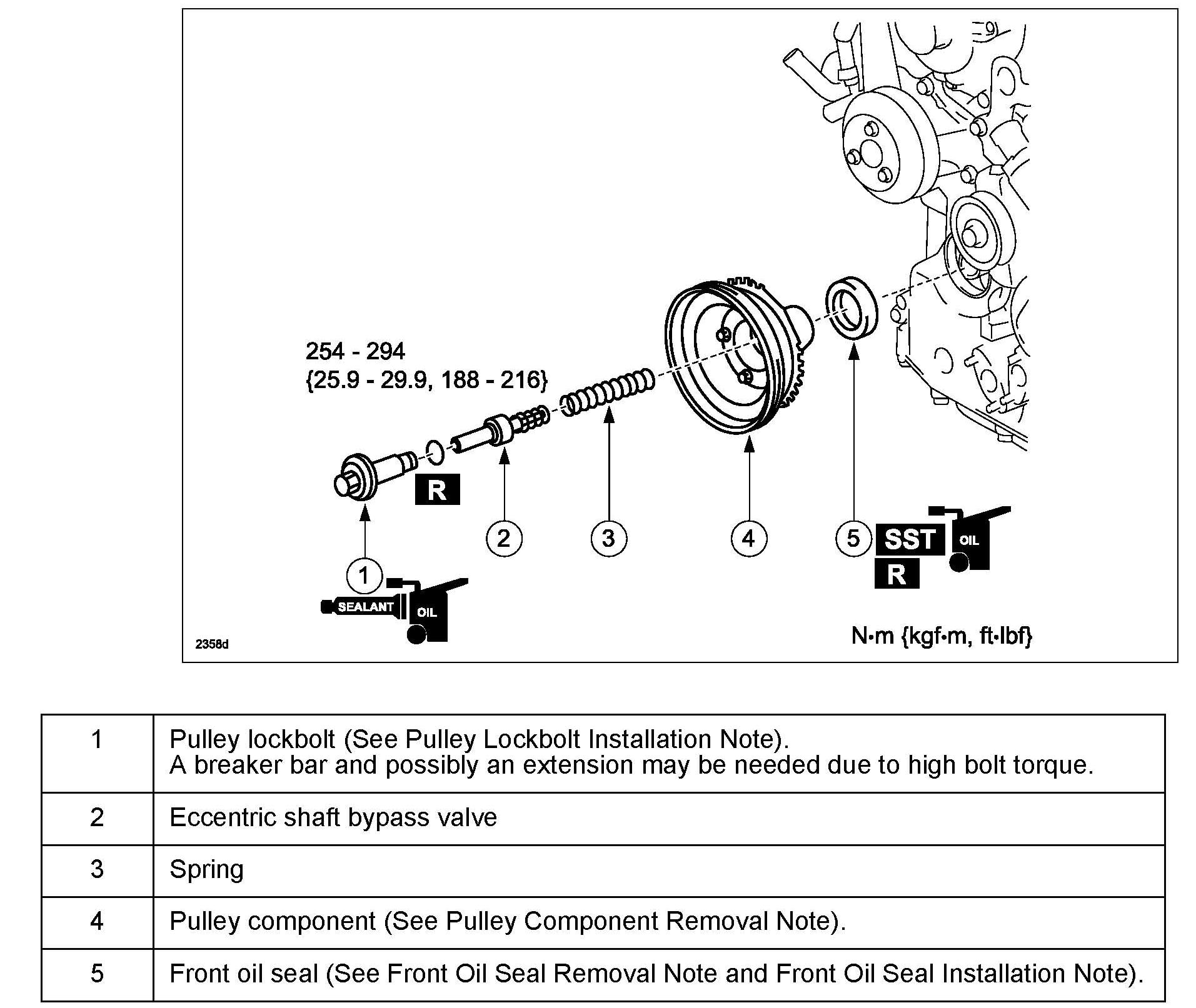 The removal / installation procedure and suggested repair time for the engine front oil seal have been updated. When removing / installing the engine front oil seal to repair an oil leak or for any other reason, follow this updated procedure.