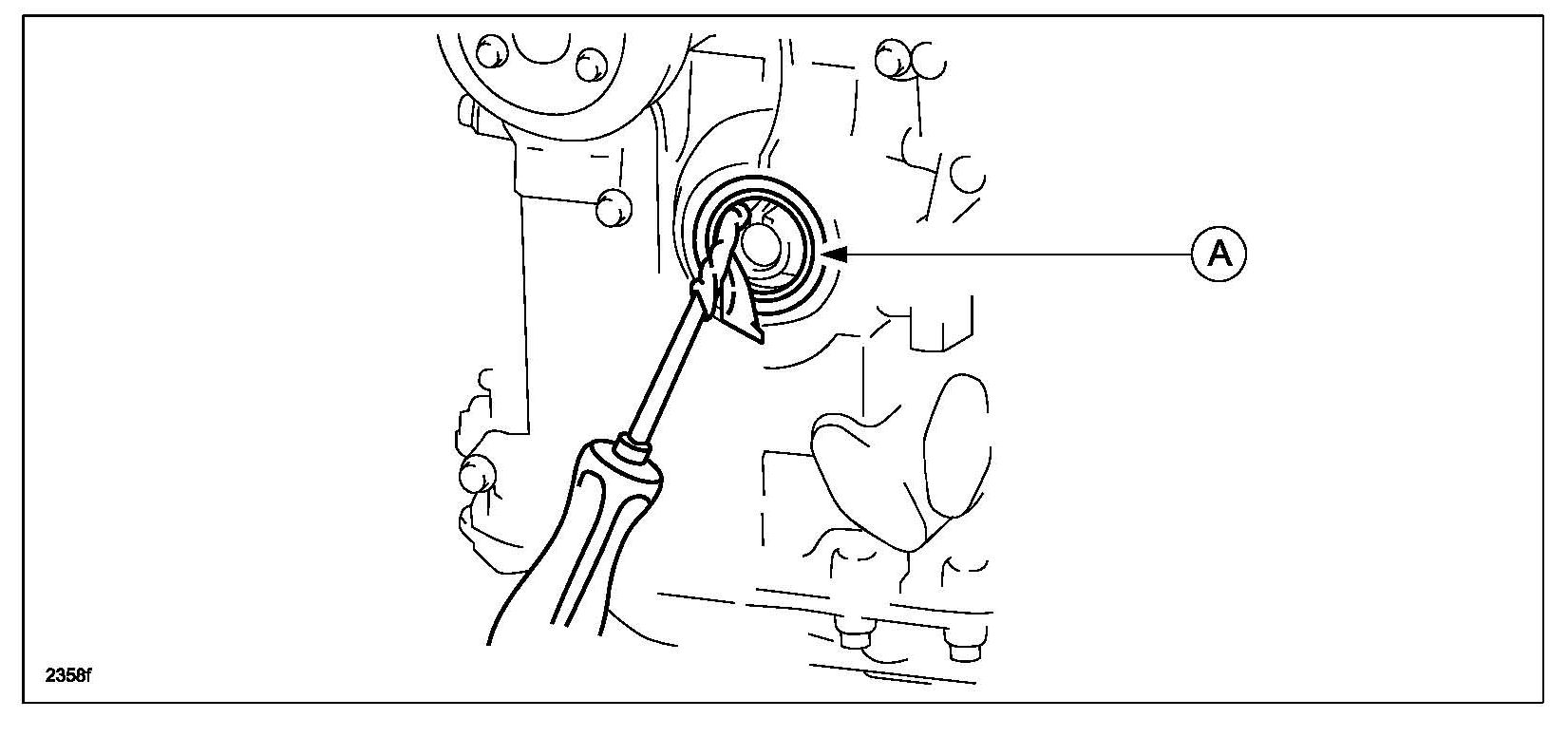 1. Remove the front oil seal (A) using a flathead screwdriver with the tip wrapped in a clean rag.
