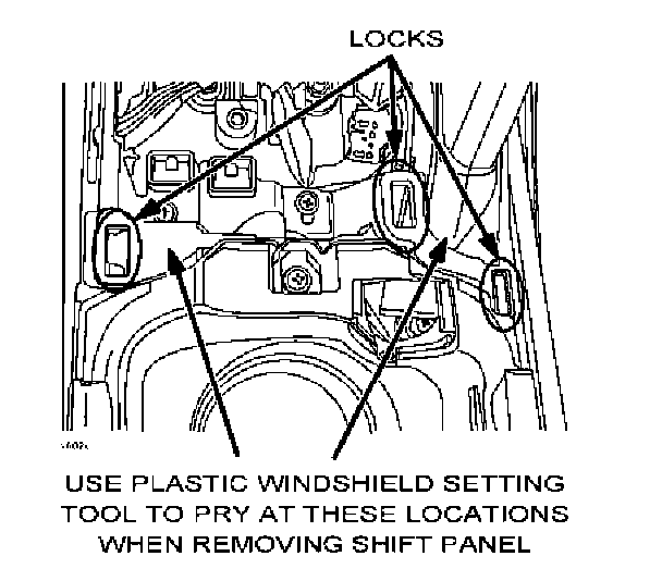 When removing the shift panel, special attention is required to release the lock(s) attaching the shift panel to the center console. If the lock(s) are broken, the shift panel may not attach properly, causing a poor fitting appearance.