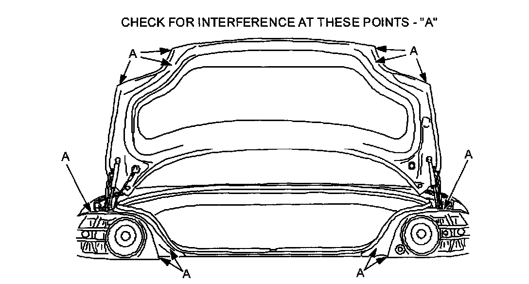 1. Verify customer concern. Check for damage caused by contact between trunk lid, rear combination lights, edge of trunk lid and/or rear bumper cover.
