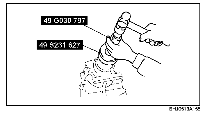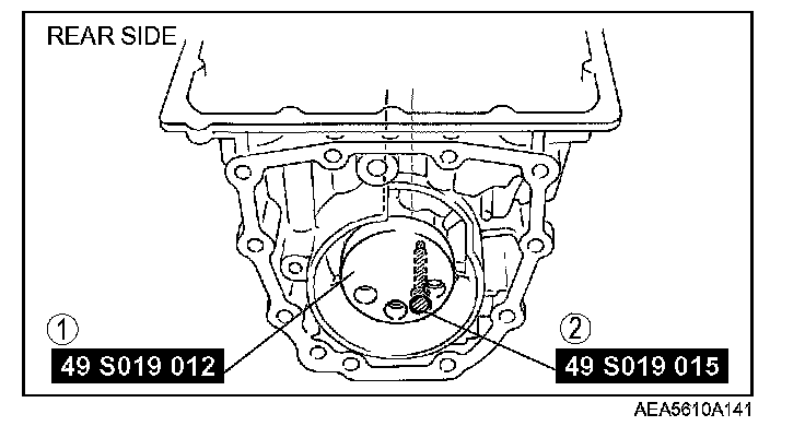 Note: Install the bearing to the transmission case with the black surface facing the rear side.