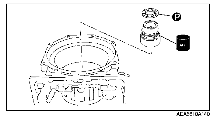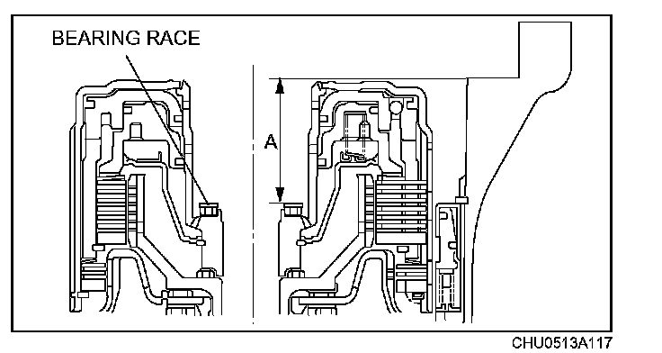 1) Install the bearing race (oil pump installation race) to the reverse and high clutch drum and measure dimension A shown in the figure.