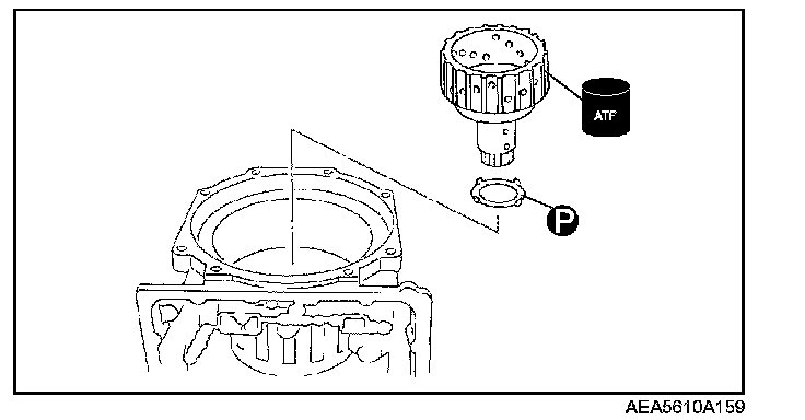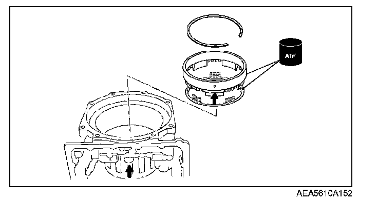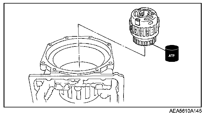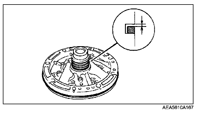 10. Verify that the top of the low clutch drum is lower than surface A (receiving surface of the 2-4 brake plate) of the transmission case.