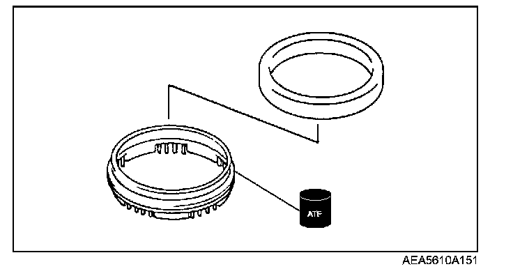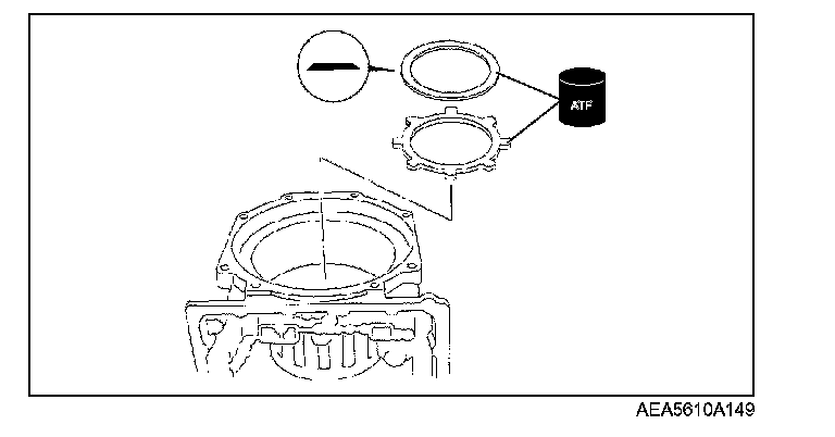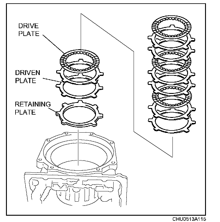 11. Apply ATF to the retaining plate, driven plates, and the drive plates, and install them to the transmission case in the following order: