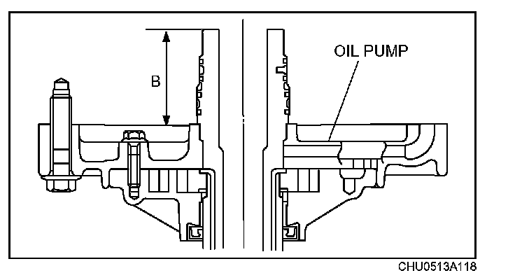 ^ If the total end play is not within the specification, adjust the total end play by selecting the correct bearing race (oil pump installation race).