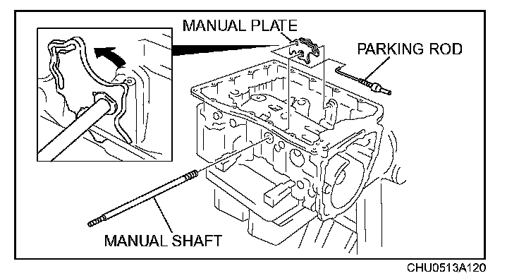 41. Install the manual shaft, manual plate and parking rod as shown in the figure.