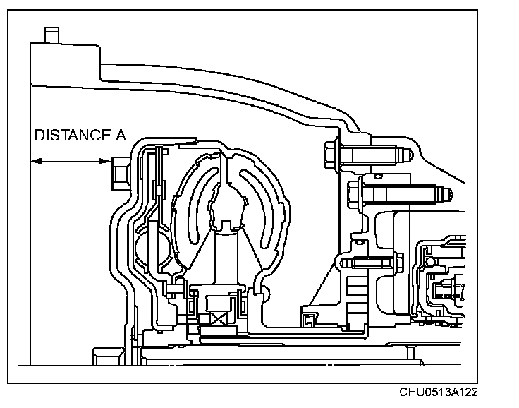 70. To ensure that the torque converter is installed accurately, measure distance A between the end of the torque converter and the end of the converter housing.