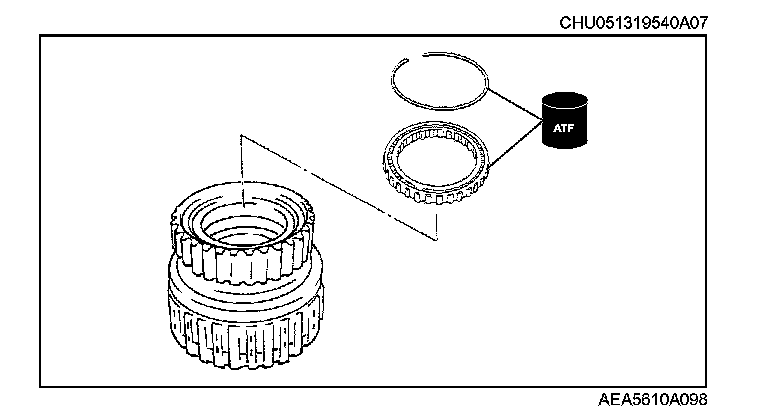 19. Apply compressed air to the part indicated in the figure and inspect the low clutch operation.