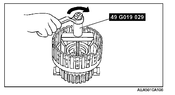 Caution: Be sure to center the SSTs on the low clutch drum. Otherwise, the return spring can be damaged.
