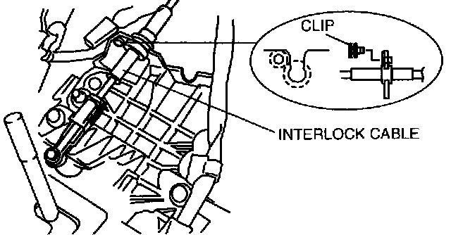 16. Install the interlock cable end to the interlock link on the selector lever.