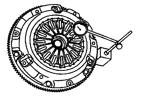 4. Attach a dial gauge to the rear housing, rotate the flywheel, then inspect for height difference between the diaphragm spring fingers.