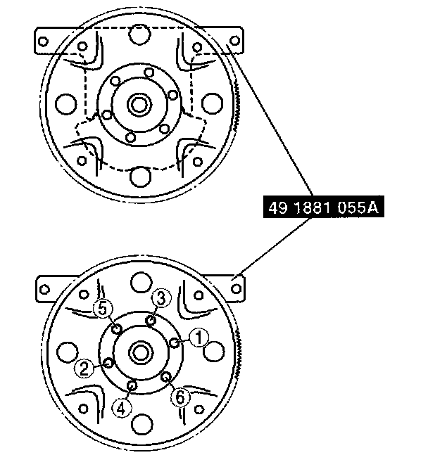 2. Tighten the drive plate mounting bolts in two or three steps.