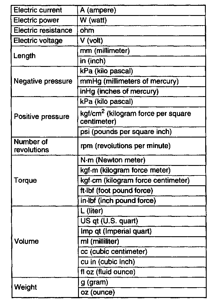 ^ When the data indicates upper and lower limits, the converted values are rounded down it the SI unit value is an upper limit and rounded up if the SI unit value is a lower limit. Therefore, converted values for the same SI unit value may differ after conversion. For example, consider 2.7 kgf/cm2 in the following specifications: