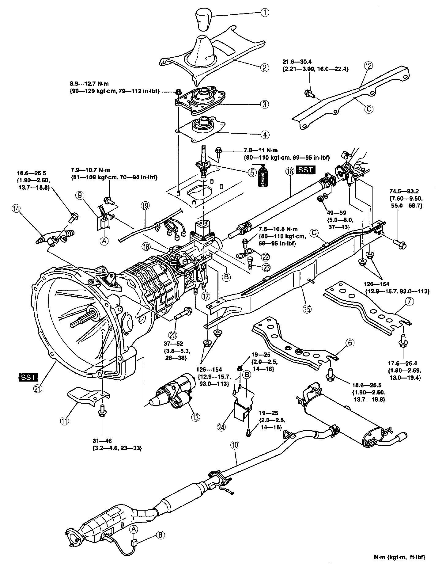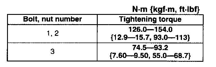 Tightening torque 126.0 - 154.0 Nm (12.9 - 15.7 kgf-cm, 93.0 - 113 ft. lbs.)