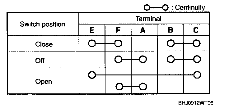 POWER WINDOW SUBSWITCH INSPECTION1. Verify continuity as indicated in the table.