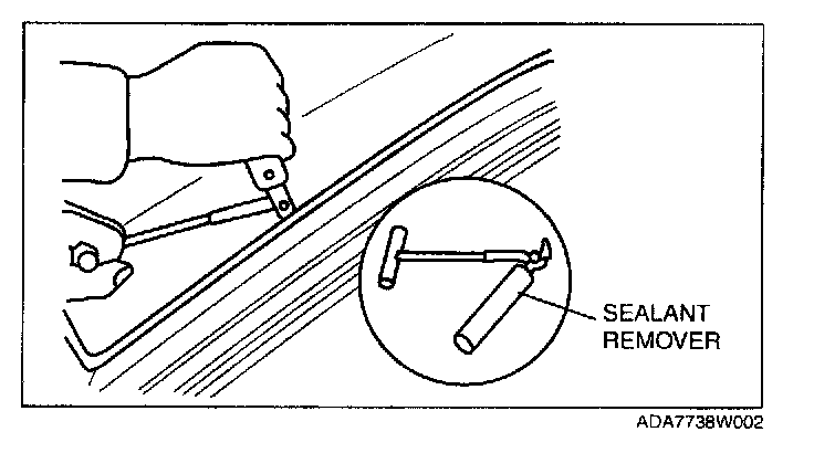NOTE: For the areas of the sealant that are difficult to cut, use the SST (piano wire) and follow the procedure under "Reusing Rear Window Glass".