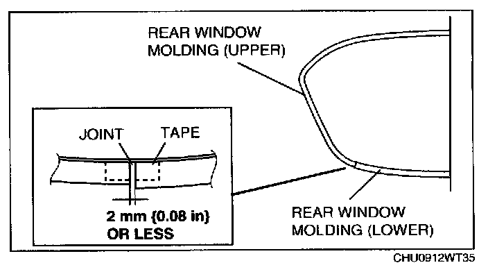 6. Affix the tape to the inside of the rear window molding at the joint.