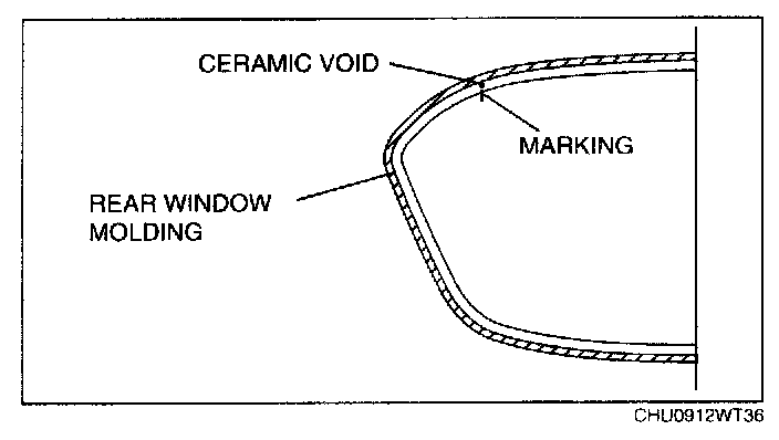 NOTE: Before removing the rear window glass from the body, mark the position of the glass by affixing tape to the glass and body panel.
