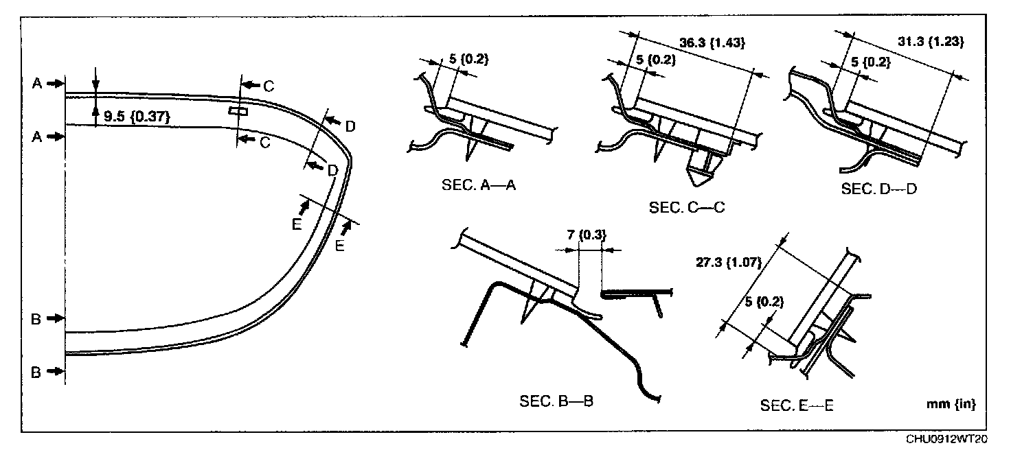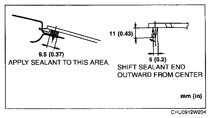 2. If the sealant has come off completely in any one place, apply some primer after degreasing, and allow it to dry for approx. 30 min. Then apply a 2 mm {0.08 in} thickness of sealant.