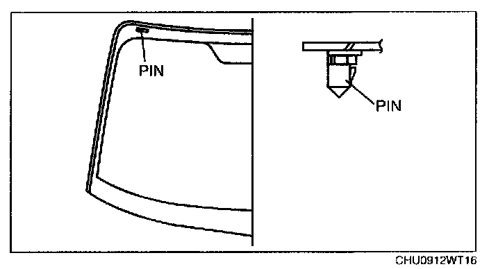 7. Mark the seating positions of the pins and remove the pins from the windshield.