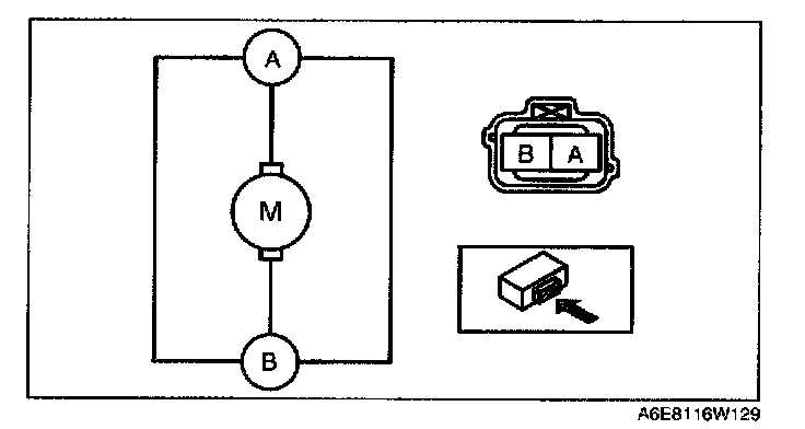 3. Connect battery positive voltage to windshield washer motor terminal A and terminal B to ground.