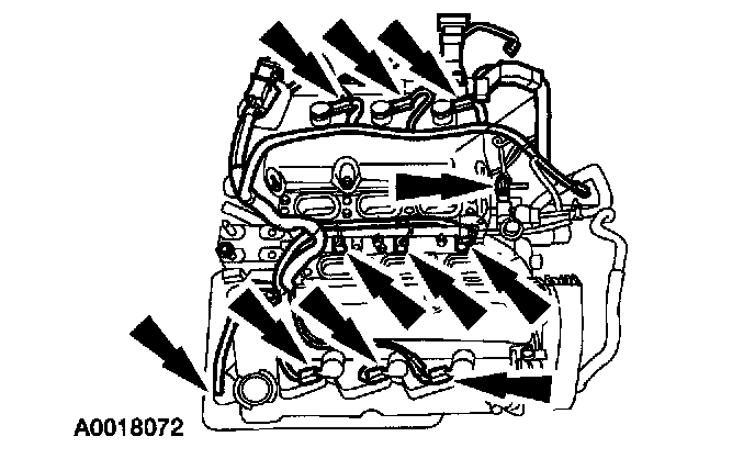 11. Remove the bolts and the six coil-on-plugs.